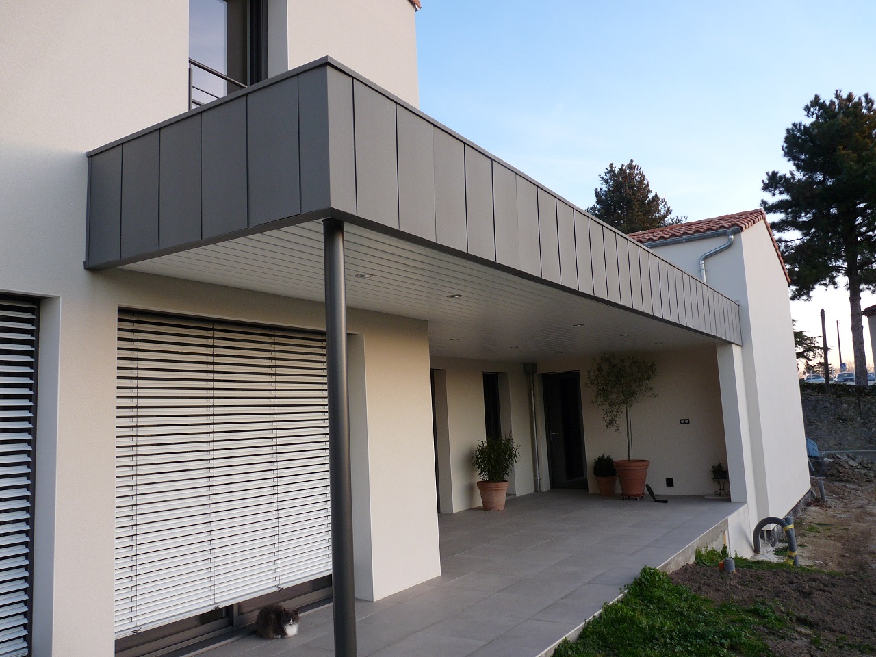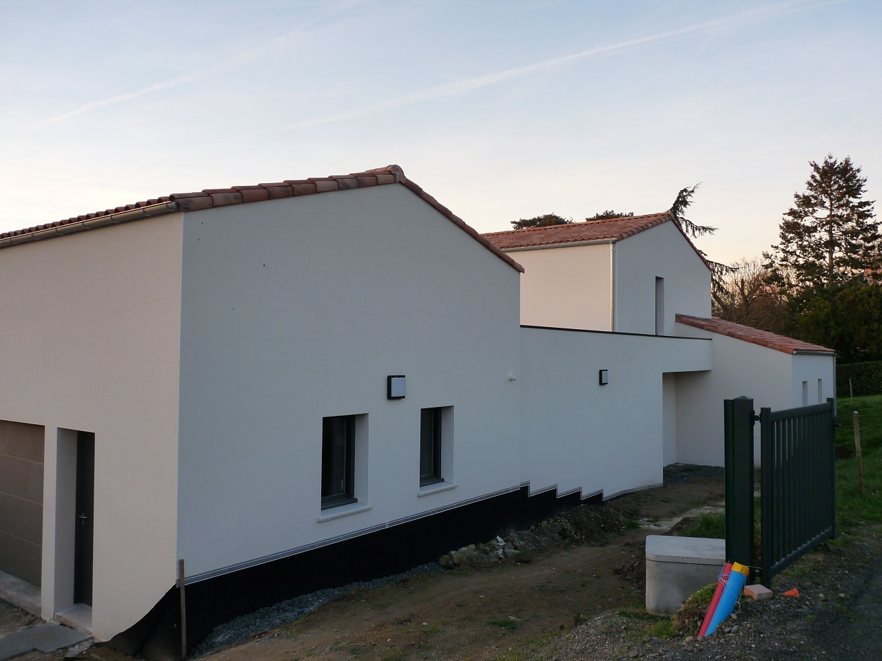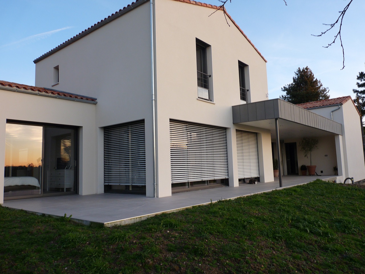 Construction contemporaine située dans un périmètre classé, soumise aux Architectes des Bâtiments de France. Réalisation en briques, avec chauffage au sol géothermique et occultations BSO pour confort et performance énergétique.