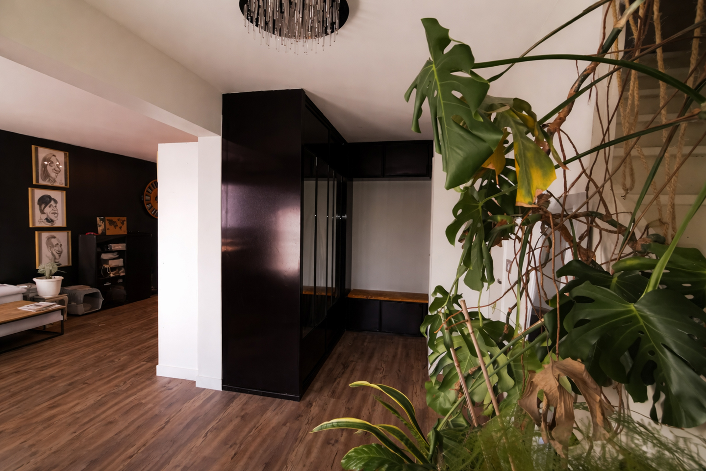 Rénovation et architecture d’intérieur d’une habitation. Réaménagement des combles avec création de placards en sous-pente. Amélioration énergétique de l’habitation. Décoration du rez-de-chaussée et conception d’un meuble d’entrée sur mesure, alliant esthétique, fonctionnalité et confort.